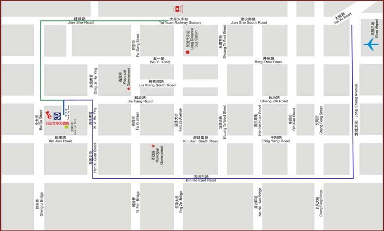 乘車路線:1.火車站乘坐 820 到城坊街口步行到太原萬達文華酒店。或乘坐出租車至酒店約15元。