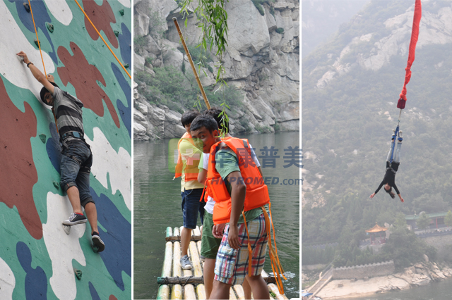 在青龍峽景區,同事們整裝待發,在淺水區進行竹伐比賽,很多同事都成了“落湯雞”呢,也有喜歡刺激的同事,體驗了蹦極跳、攀巖。同事們表現出各種勇敢,各種智謀,這正體現了華康普美這一年輕團隊的活力、朝氣蓬勃!