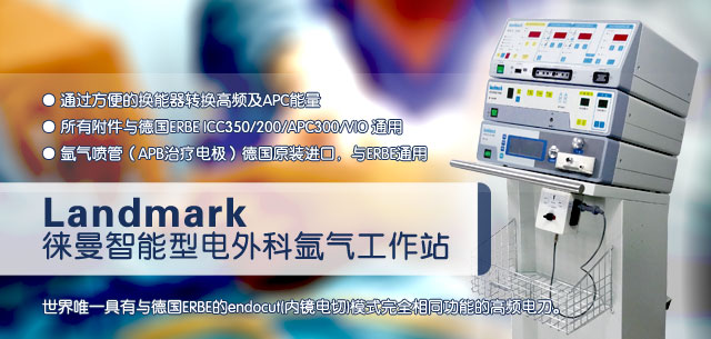 世界唯一具有與德國ERBE的endocut(內(nèi)鏡電切)模式完全相同功能的高頻電刀:通過方便的換能器轉(zhuǎn)換高頻及APC能量; 所有附件與德國ERBE ICC350/200/APC300/VIO 通用; 氬氣噴管(APB治療電極)德國原裝進口,與ERBE通用。