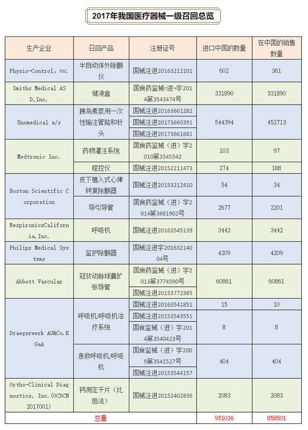 根據CFDA官網數據統計,2017年,全國總共發布一級召回13起,共涉及醫療器械產品19個。