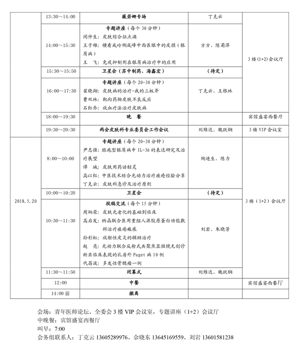 5月18日19∶30~21∶00 省中醫(yī)、中西醫(yī)結(jié)合學(xué)會(huì)皮膚科專(zhuān)業(yè)委員會(huì)工作會(huì)議。請(qǐng)全體委員準(zhǔn)時(shí)出席,若遇特殊情況,須履行請(qǐng)假手續(xù)。