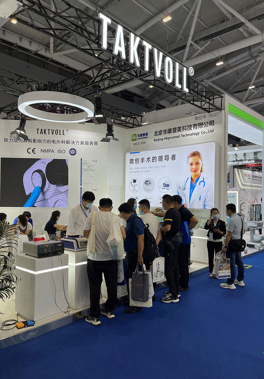 此次,華康普美攜自主研發品牌TAKTVOLL高頻電刀及利普刀,高清陰道鏡系列及吸煙器等產品亮相本次展會,吸引了大量的觀眾駐足咨詢……