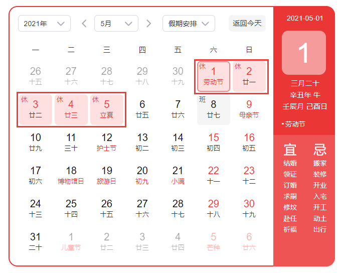 五一勞動節假期安排見下圖: