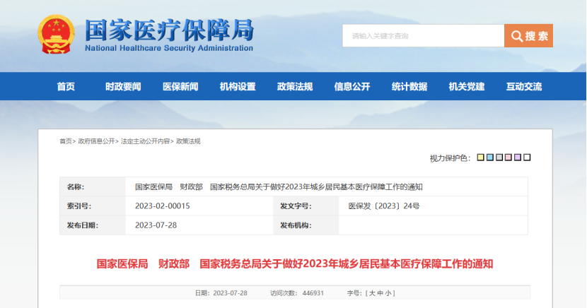 7月28日,國家醫(yī)保局發(fā)布《國家醫(yī)保局 財政部 國家稅務總局關于做好2023年城鄉(xiāng)居民基本醫(yī)療保障工作的通知》(以下簡稱《通知》)。