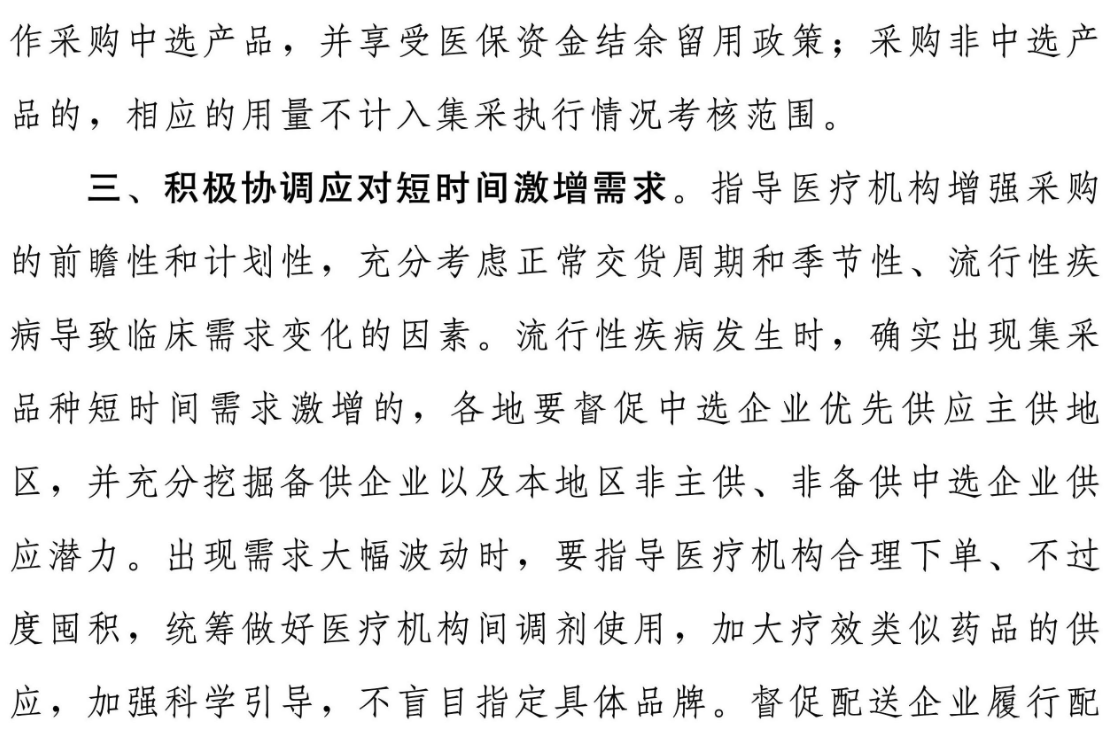 《通知》指出,藥品、醫用耗材集中帶量采購 (以下簡稱“集采”) 工作開展以來,中選產品供應總體穩定,但受短期臨床需求波動等影響,也出現個別品種臨時性供應緊張問題。