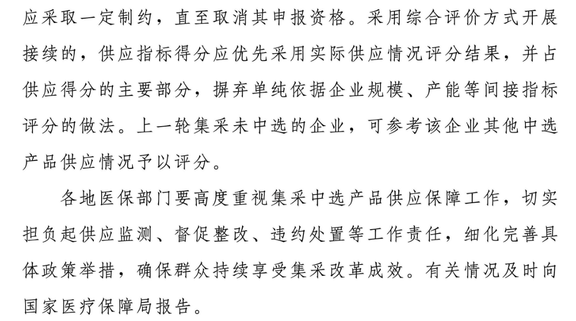 據觀察,文件中進一步明確了中選產品供應保障要求,醫藥企業部分行為可能導致其失去集采中選資格。