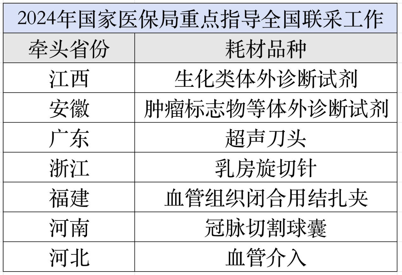 國(guó)家醫(yī)保局重點(diǎn)指導(dǎo)如下全國(guó)聯(lián)采工作:江西牽頭開展生化類體外診斷試劑聯(lián)盟采購(gòu);安徽牽頭開展腫瘤標(biāo)志物等體外診斷試劑聯(lián)盟采購(gòu);廣東牽頭開展超聲刀頭聯(lián)盟采購(gòu);浙江牽頭開展乳房旋切針聯(lián)盟采購(gòu);福建牽頭開展血管組織閉合用結(jié)扎夾聯(lián)盟采購(gòu);河南牽頭開展冠脈切割球囊等聯(lián)盟采購(gòu);河北牽頭開展血管介入等耗材聯(lián)盟采購(gòu)。