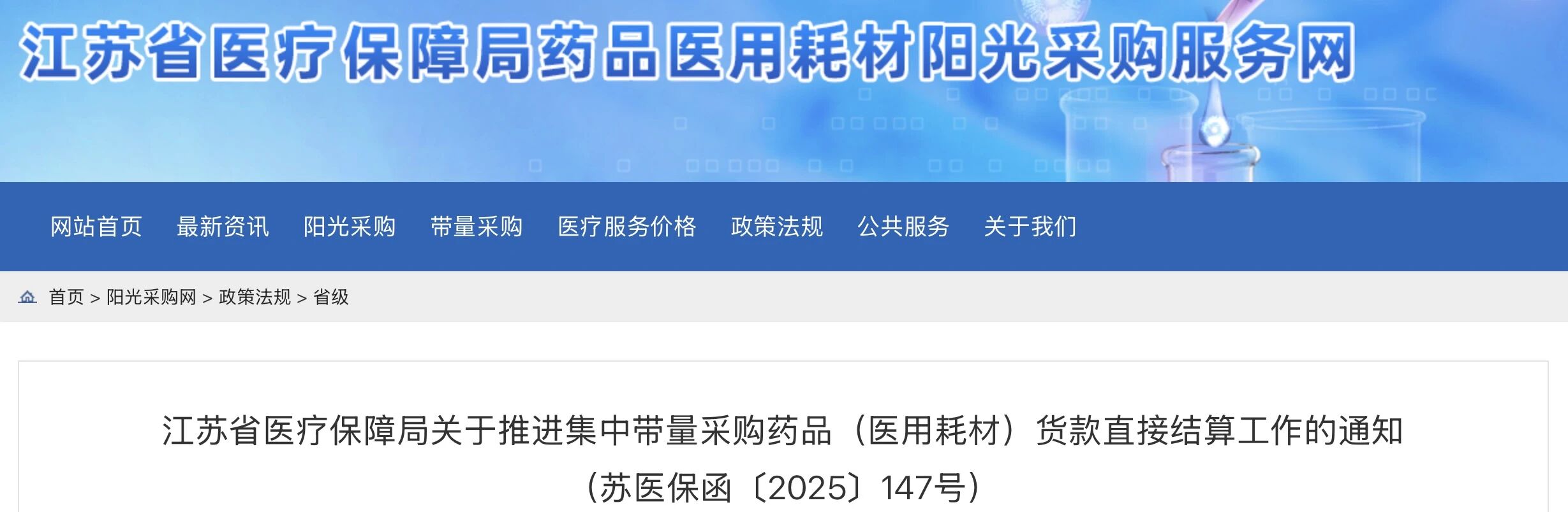 近日,江蘇醫(yī)保局發(fā)布《關(guān)于推進(jìn)集中帶量采購藥品(醫(yī)用耗材)貨款直接結(jié)算工作的通知》(簡稱《通知》)。