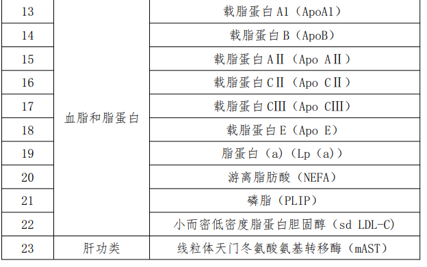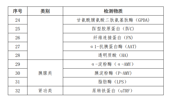 其中,初步遴選出32個(gè)品種并進(jìn)行公示,包括糖代謝、離子微量元素、血脂和脂蛋白、肝功類、胰腺類、腎功類等6個(gè)類別。