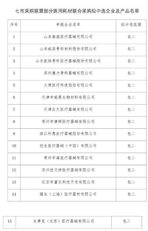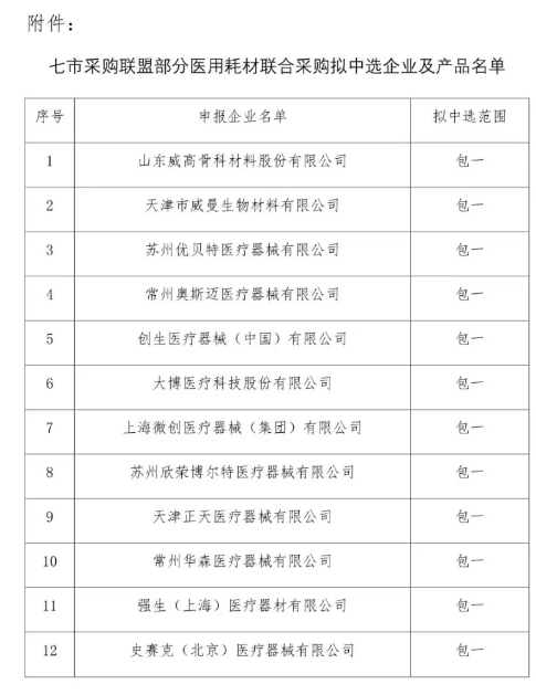 在本次七市聯盟帶量采購的采購品種中,骨科創傷類高值耗材是目前全國范圍內首次進行大規模的跨區域聯盟以量換價的耗材。