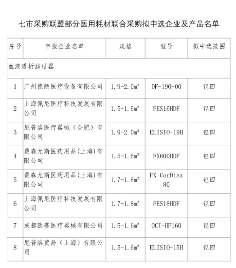 按照七市聯盟的要求,本次帶量采購后,七市所有開展骨科創傷和血液透析業務的二級及以上公立醫療機構將全部使用中標產品。