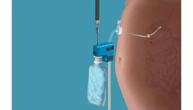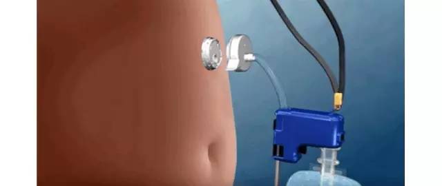 在AspireAssist的使用過程中,會有一條導管經(jīng)腹部插入患者胃里,它通過一個“端口閥”進入,端口閥位于患者肚臍的正上方,患者可以打開、關(guān)閉閥門來排出胃里的食物。用餐后20至30分鐘,病人才能將泵與閥門連接起來,胃中的食糜就可以被導出并且直接排進廁所廁所,此過程大約耗時10分鐘。