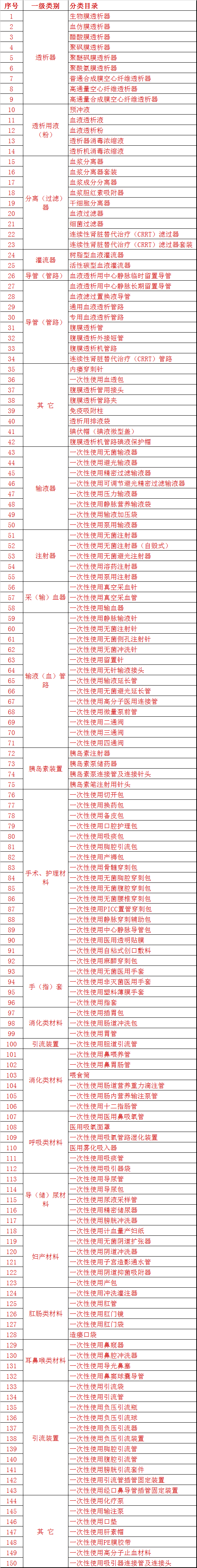 內蒙古耗材招標「150目錄」品種一覽