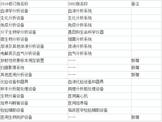 新版臨床檢驗(yàn)器械子目錄在一級(jí)目錄上的變化