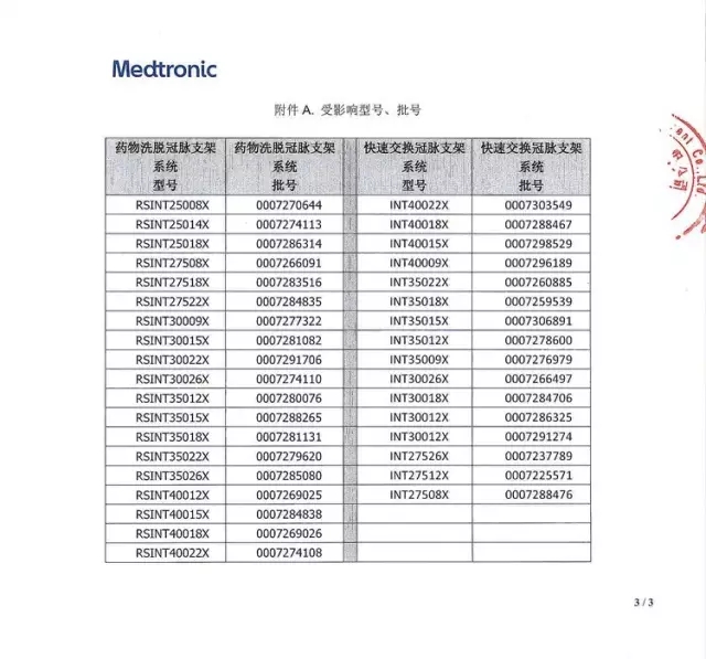 美敦力(上海)管理有限公司報告,該公司代理的藥物洗脫冠脈支架系統(注冊證編號:國械注進20163460682)和快速交換冠脈支架系統(注冊證編號:國械注進20153461149),由于部分產品可能貼上了錯誤的標簽,其生產商Medtronic Inc.對該產品進行主動召回。該公司稱本次召回產品未在中國銷售。請各省、自治區、直轄市食品藥品監督管理局加強對此類產品的監督管理。