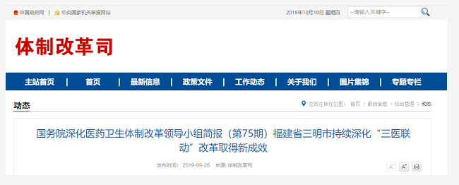 三明模式的主要特點與國家目前推動醫(yī)改方向十分的契合,因此國家更加大力的推進各地復制三明醫(yī)改經(jīng)驗。