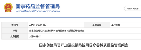 日前,國(guó)家藥監(jiān)局召開加強(qiáng)疫情防控用醫(yī)療器械質(zhì)量監(jiān)管視頻會(huì),全面貫徹落實(shí)國(guó)務(wù)院關(guān)于做好常態(tài)化疫情防控有關(guān)工作部署和要求,對(duì)進(jìn)一步加強(qiáng)新冠病毒檢測(cè)試劑、醫(yī)用防護(hù)服、醫(yī)用口罩、紅外體溫計(jì)、呼吸機(jī)等醫(yī)療器械質(zhì)量監(jiān)管工作再部署、再?gòu)?qiáng)調(diào)、再落實(shí)。