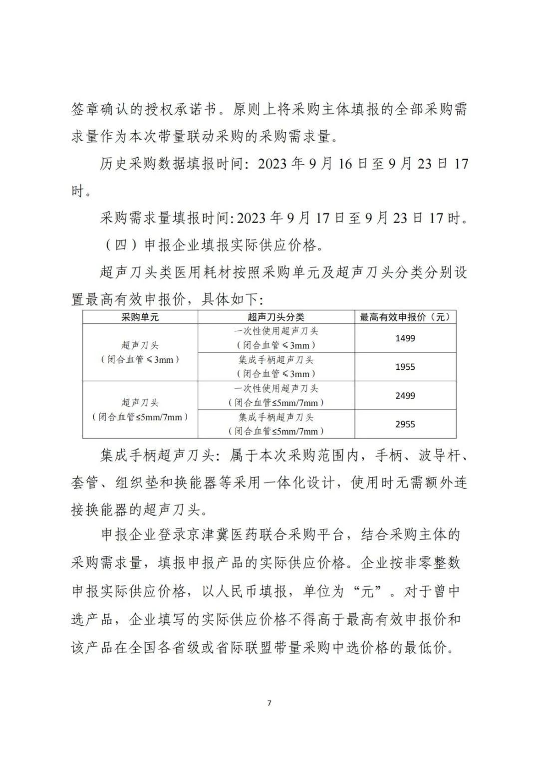 根據《通知》,超聲刀頭類醫用耗材醫療機構歷史采購數據填報時間為2023年9月18日9時-9月23日17時;超聲刀頭類醫療機構采購需求量填報時間為2023年9月19日9時-9月23日17時。