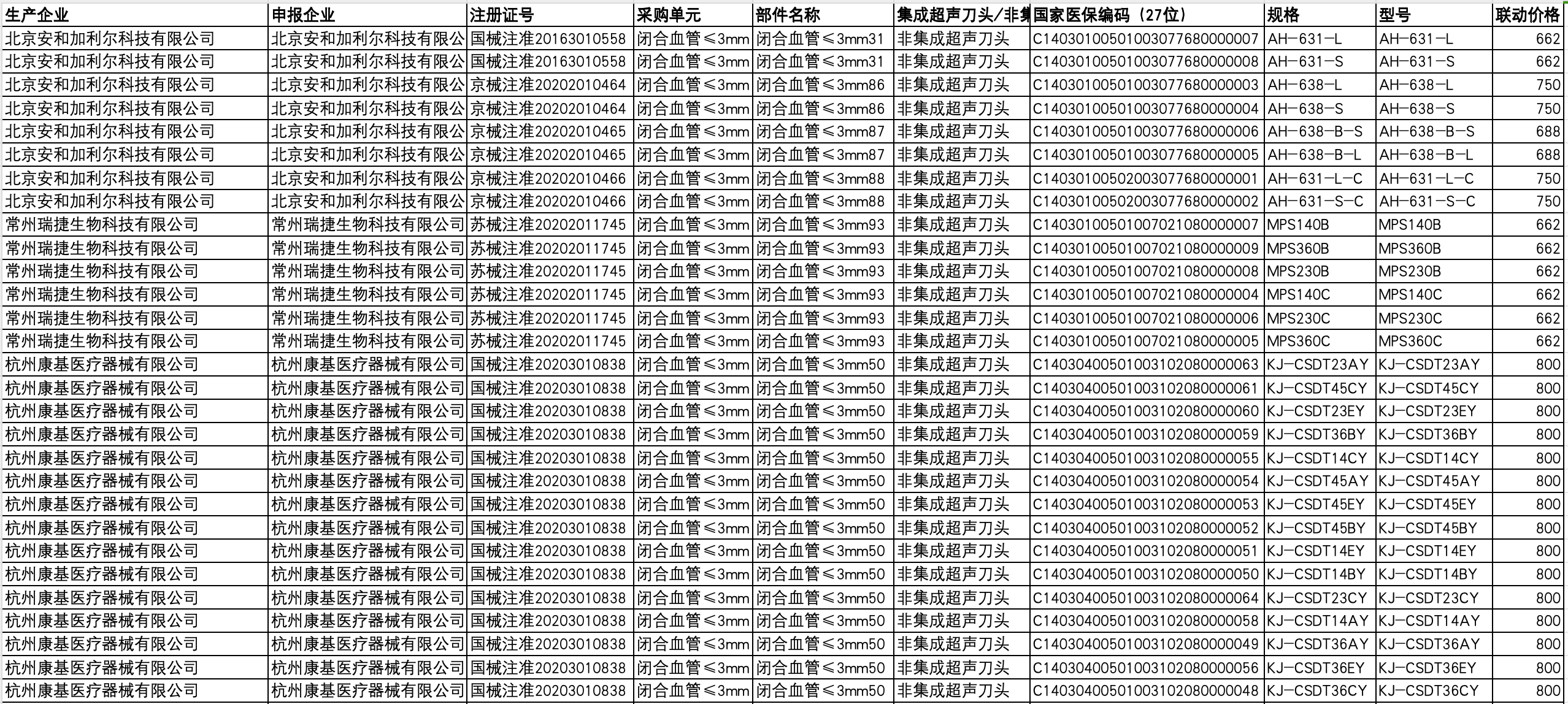 在低價聯動模式下,超聲刀頭全國價格進一步下調、拉齊。
