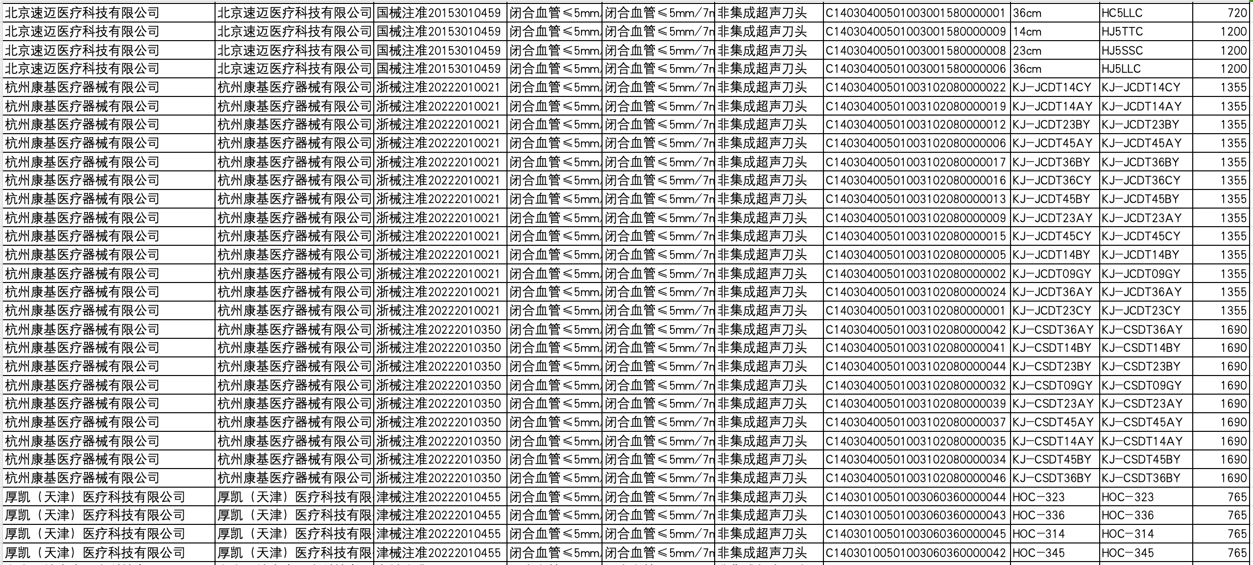 公示內容顯示,閉合血管≤3mm的超聲刀頭最低價已降至536元,閉合血管≤5mm/7mm的超聲刀頭最低價降至720元。