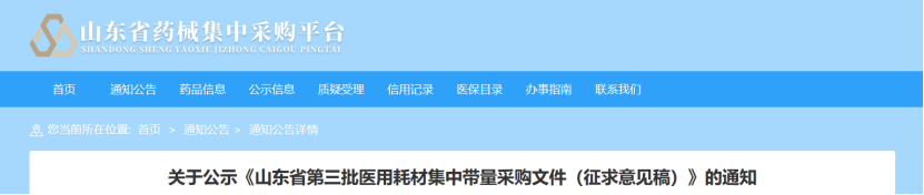 3月8日,山東省藥械集中采購平臺發(fā)布《山東省第三批醫(yī)用耗材集中帶量采購文件(征求意見稿)》(以下簡稱《征求意見稿》)。
