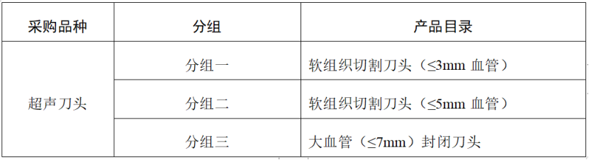 其中,超聲刀頭為國家醫(yī)保局醫(yī)保醫(yī)用耗材編碼前7位為C140301、C140302和C140304的產(chǎn)品。具體分組如下: