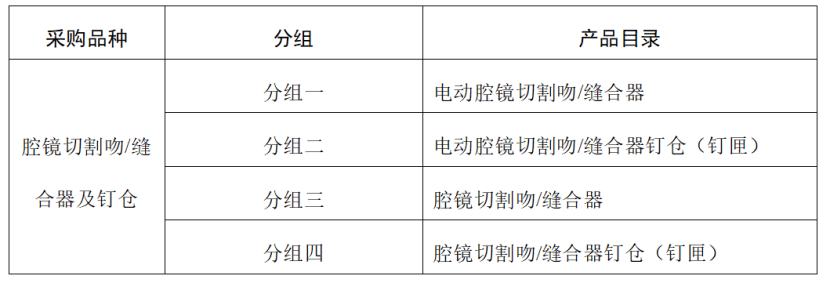 腔鏡切割吻/縫合器及釘倉(釘匣)為國家醫(yī)保局醫(yī)保醫(yī)用耗材編碼前7位為C110102、C110103、C110104和C110105的產(chǎn)品。具體分組如下: