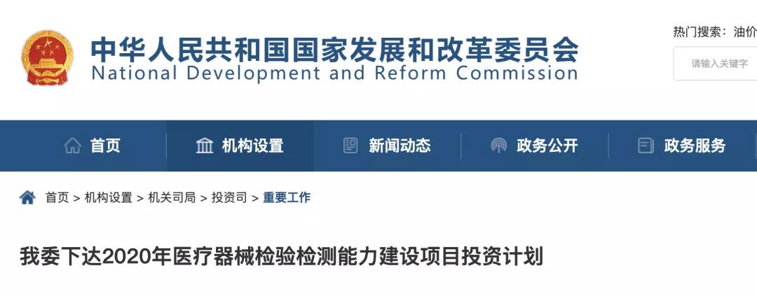 日前,據國家發改委消息,根據國家藥品安全規劃,近日我委向京津冀協同發展、“一帶一路”建設、長江經濟帶發展、粵港澳大灣區建設、長三角一體化發展等國家發展戰略區域有關省份下達了2020年醫療器械檢測能力項目投資計劃。