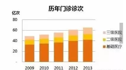 基層醫(yī)療機(jī)構(gòu)的現(xiàn)存問題2009-2013年的門診量對比