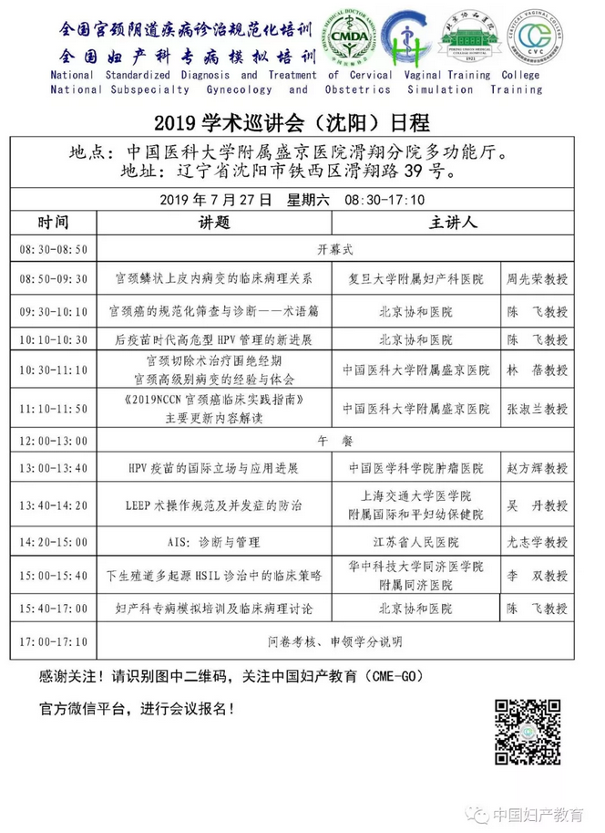 通知 | 7月27日,CVC與GOST2019第7站遼寧沈陽學術巡講會日程來了!