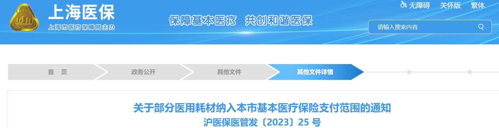 近日,上海醫(yī)保局發(fā)布《關(guān)于部分醫(yī)用耗材納入本市基本醫(yī)療保險支付范圍的通知滬醫(yī)保醫(yī)管發(fā)〔2023〕25 號》的文件,自10月日起,將“人工間盤及配件”等60個醫(yī)用耗材條目新納入上海市基本醫(yī)療保險支付范圍(名單見文末)。