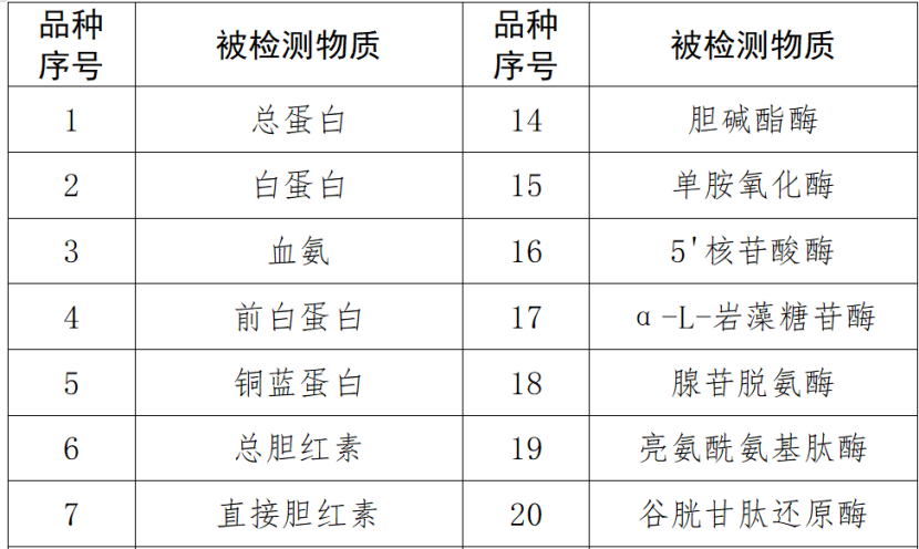 本次帶量采購的品種,是指按醫療器械管理的用于人體樣本體外檢測的單品種液體生化診斷試劑,具體被檢測物質詳見下表。
