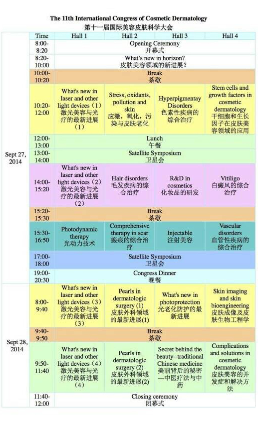 第十一屆國際美容皮膚科學(xué)大會日程安排