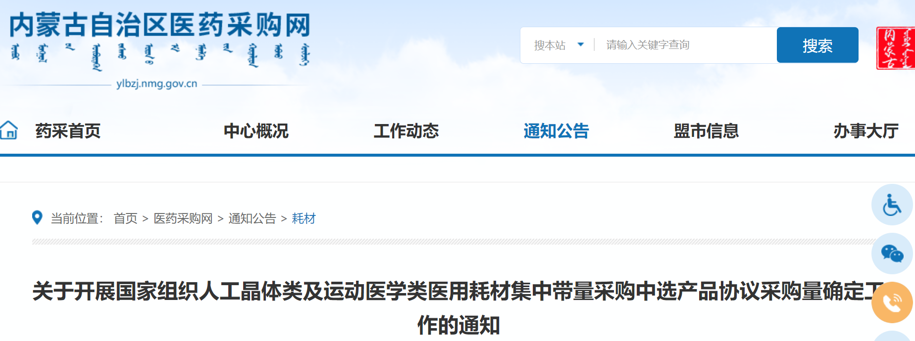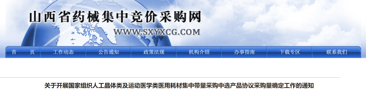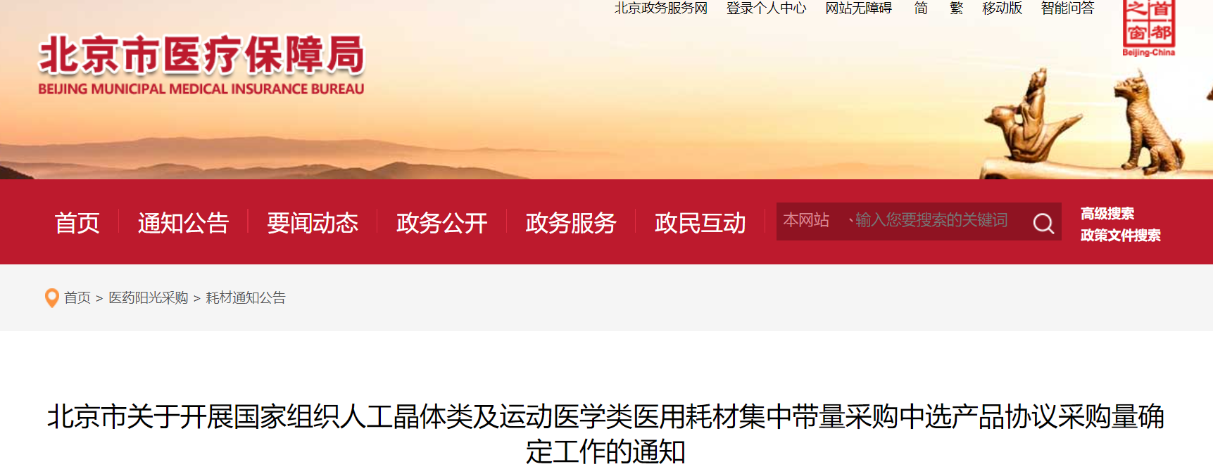 近日,北京、山西、內(nèi)蒙古等地發(fā)布了《開展國家組織人工晶體類及運(yùn)動(dòng)醫(yī)學(xué)類醫(yī)用耗材集中帶量采購中選產(chǎn)品協(xié)議采購量確定工作的通知》,要求當(dāng)?shù)蒯t(yī)療機(jī)構(gòu)確定協(xié)議采購產(chǎn)品以及采購量。