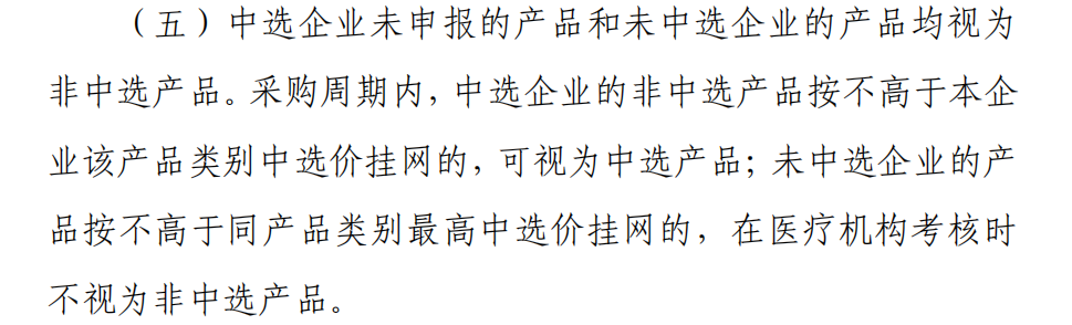 如果是非中選企業(yè)新批了一個(gè)產(chǎn)品,只要不高于這個(gè)同類產(chǎn)品的最高中選價(jià),進(jìn)院之后醫(yī)院使用它也不按照非中選產(chǎn)品來考核。