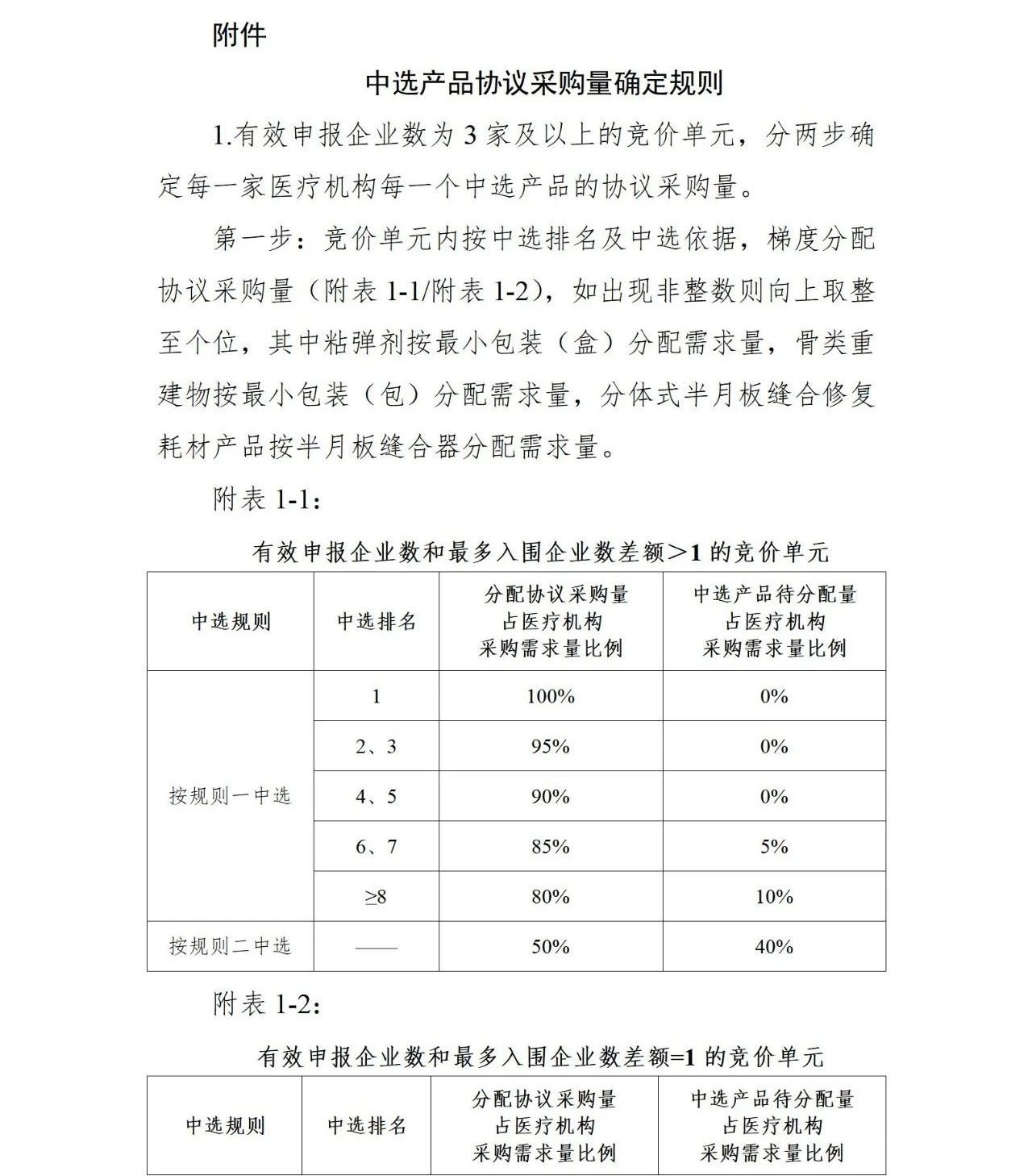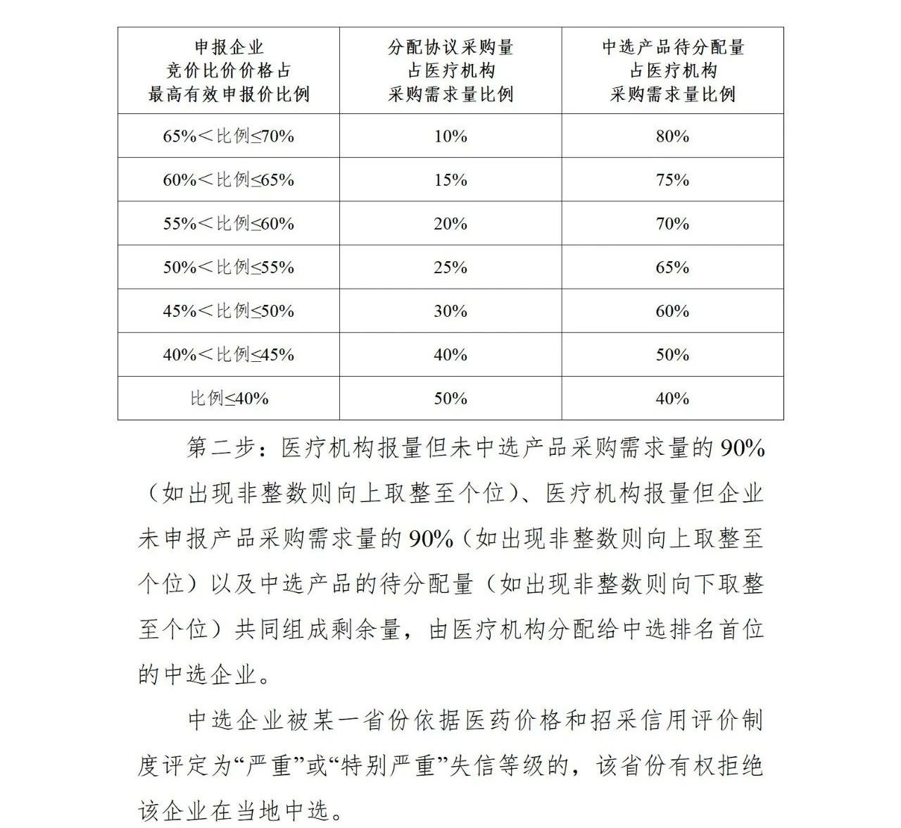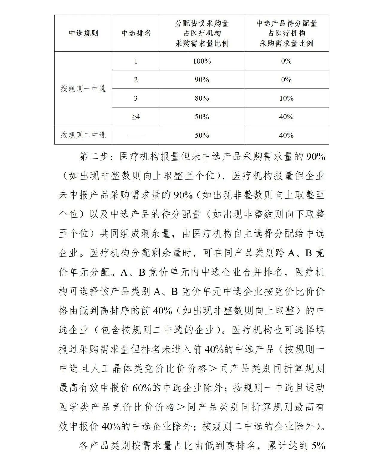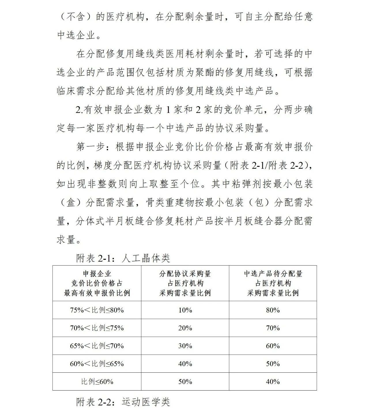 例如,第四批國采設(shè)置了“復(fù)活機(jī)制”,人工晶體降40%、運(yùn)動(dòng)醫(yī)學(xué)降60%即可直接中選,但只能分得50%的采購量,以及40%的待分配量,后者還需再進(jìn)行價(jià)格排名后才有機(jī)會(huì)獲得。