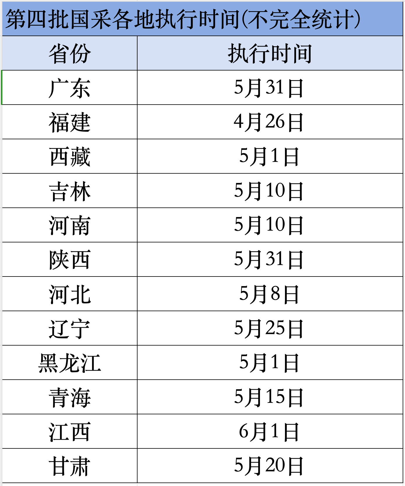 近日,廣東、遼寧、江西、河南、福建、黑龍江、吉林、河北、青海、陜西、甘肅、西藏等省份陸續發布第四批國采的執行通知。