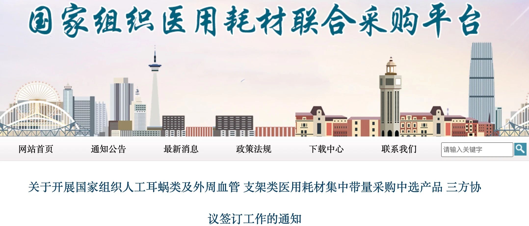 近日,國家組織高值醫用耗材聯合采購辦公室發布《關于開展國家組織人工耳蝸類及外周血管支架類醫用耗材集中帶量采購中選產品三方協議簽訂工作的通知》(簡稱《通知》)。