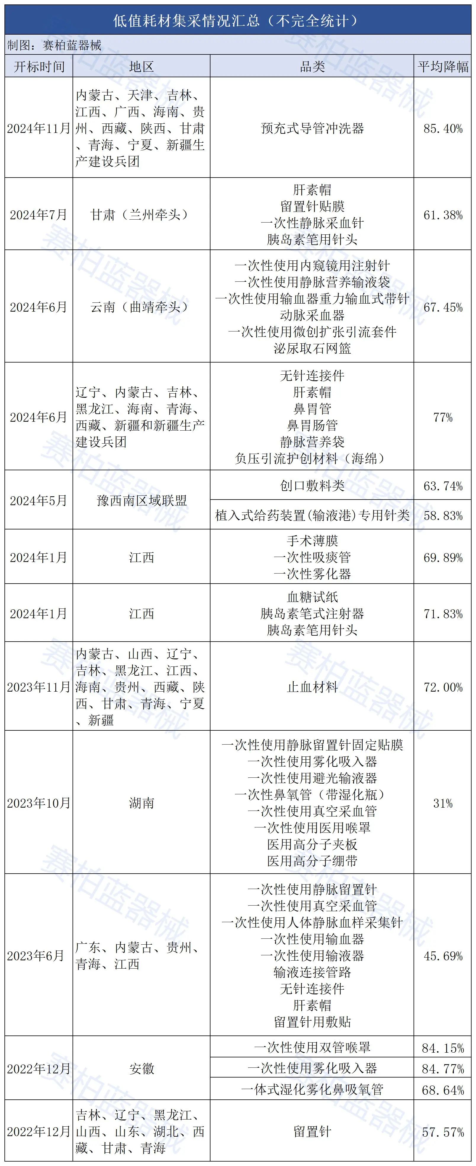 除上述已開標(biāo)項(xiàng)目外,還有多個(gè)低值耗材集采項(xiàng)目正在推進(jìn)中。