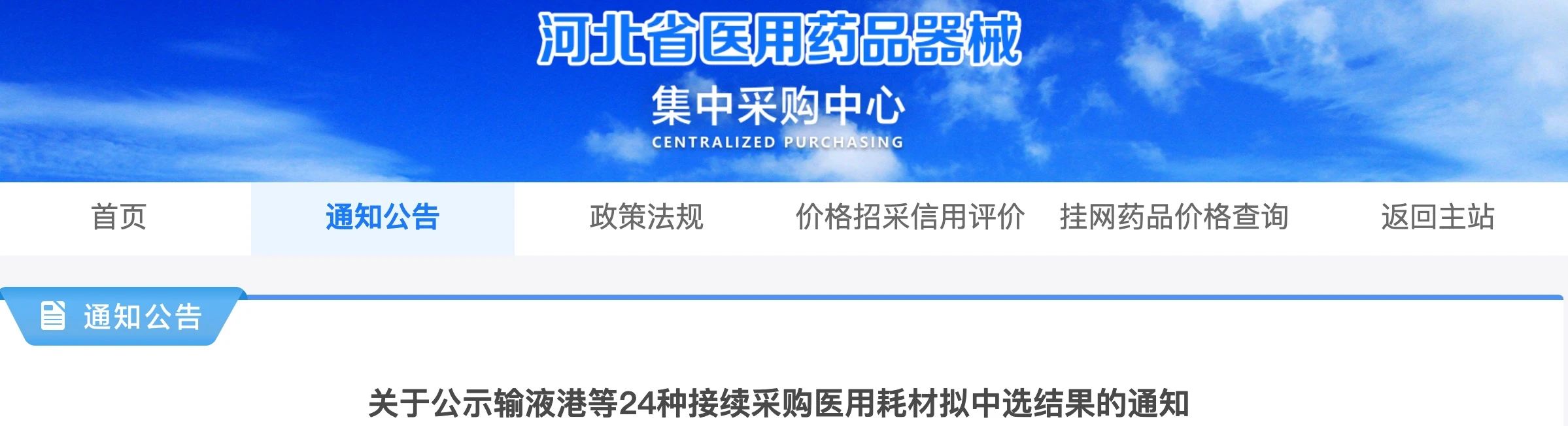 日,河北省醫(yī)用藥品器械集中采購中心發(fā)布《關于公示輸液港等24種接續(xù)采購醫(yī)用耗材擬中選結果的通知》。