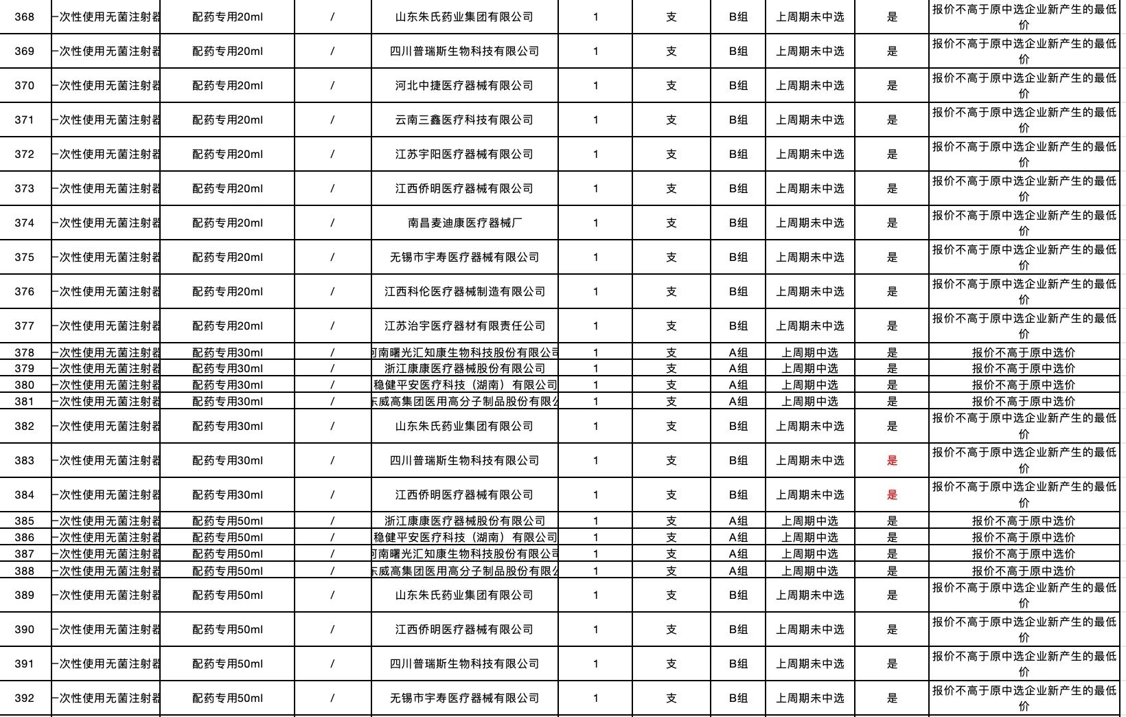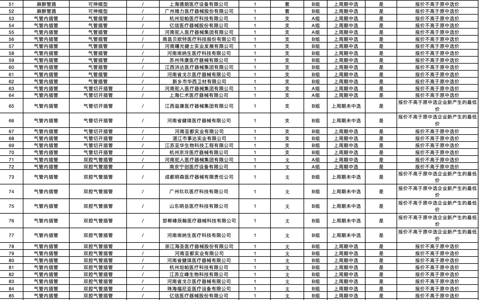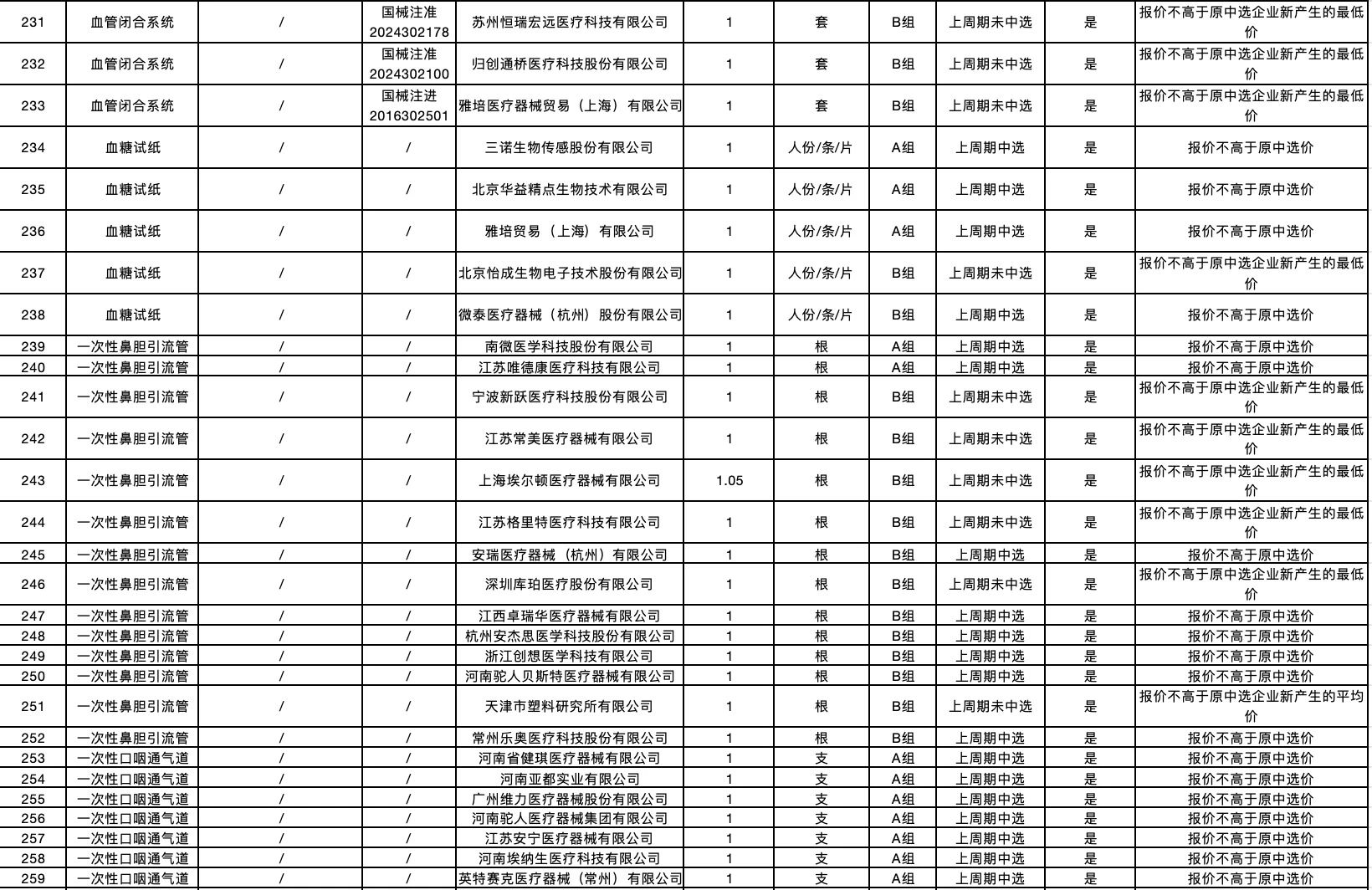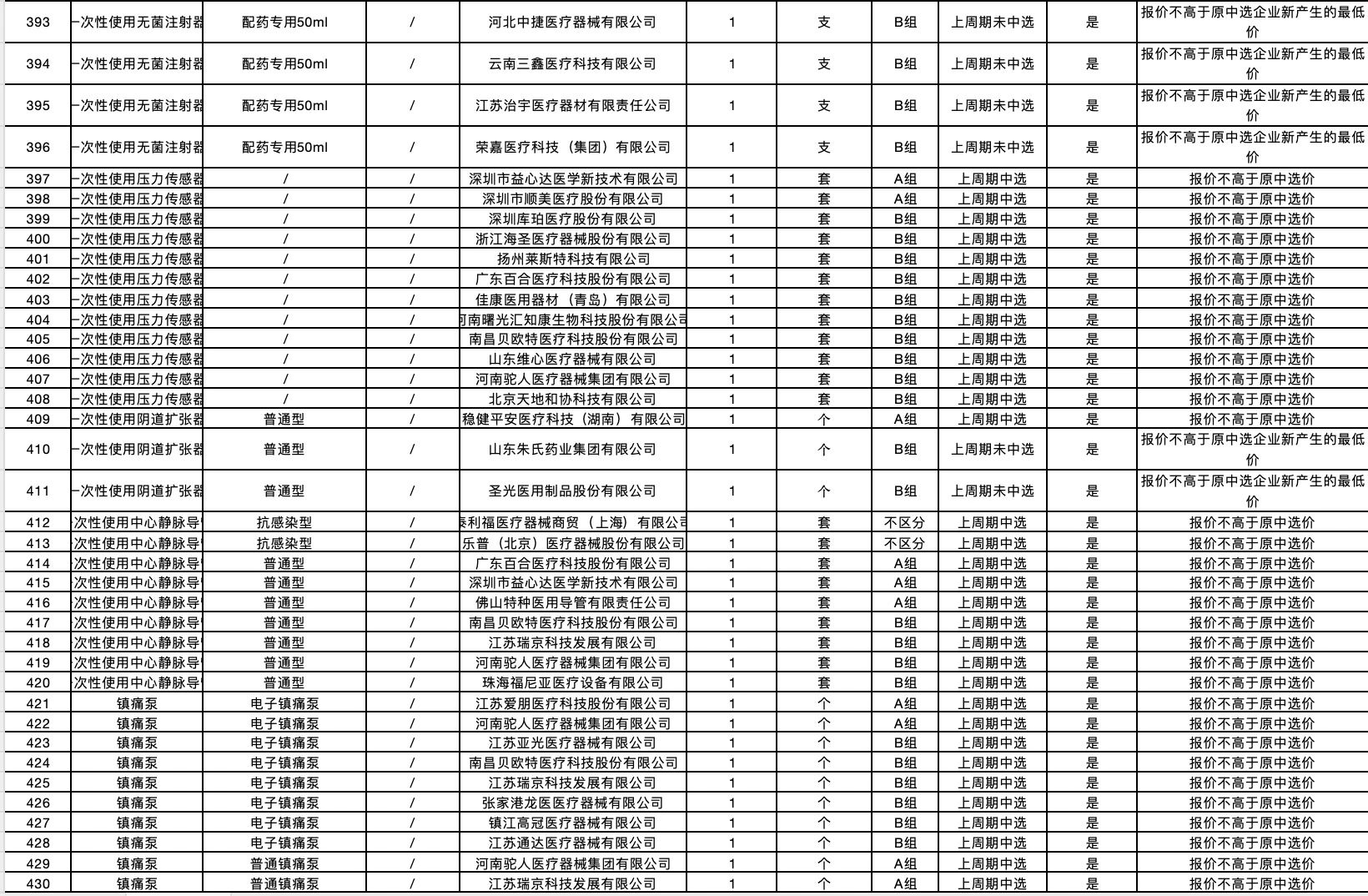按照采購文件關于報價的規(guī)定,24個采購品種分47個產品分類進行報價,擬中選情況如下: