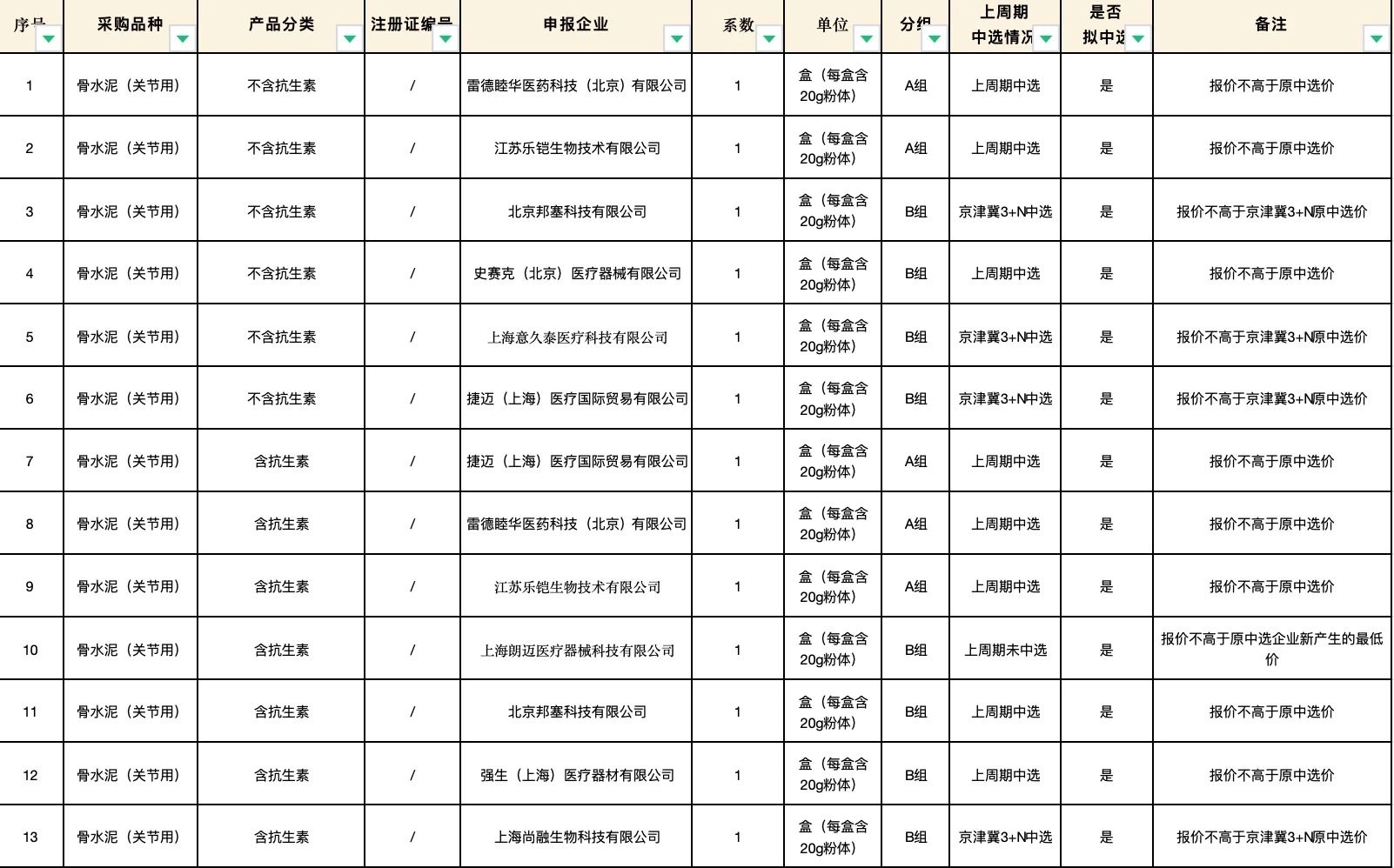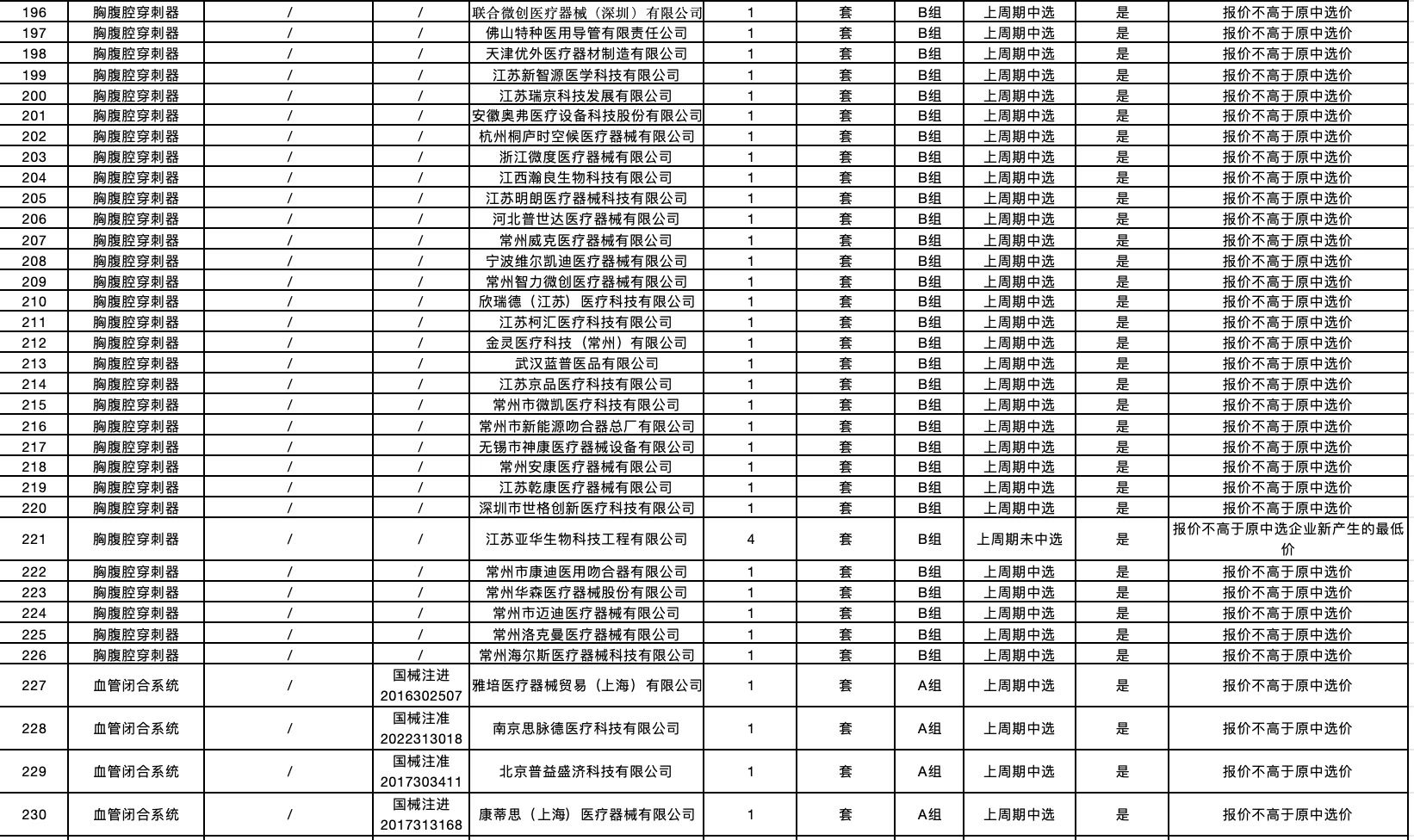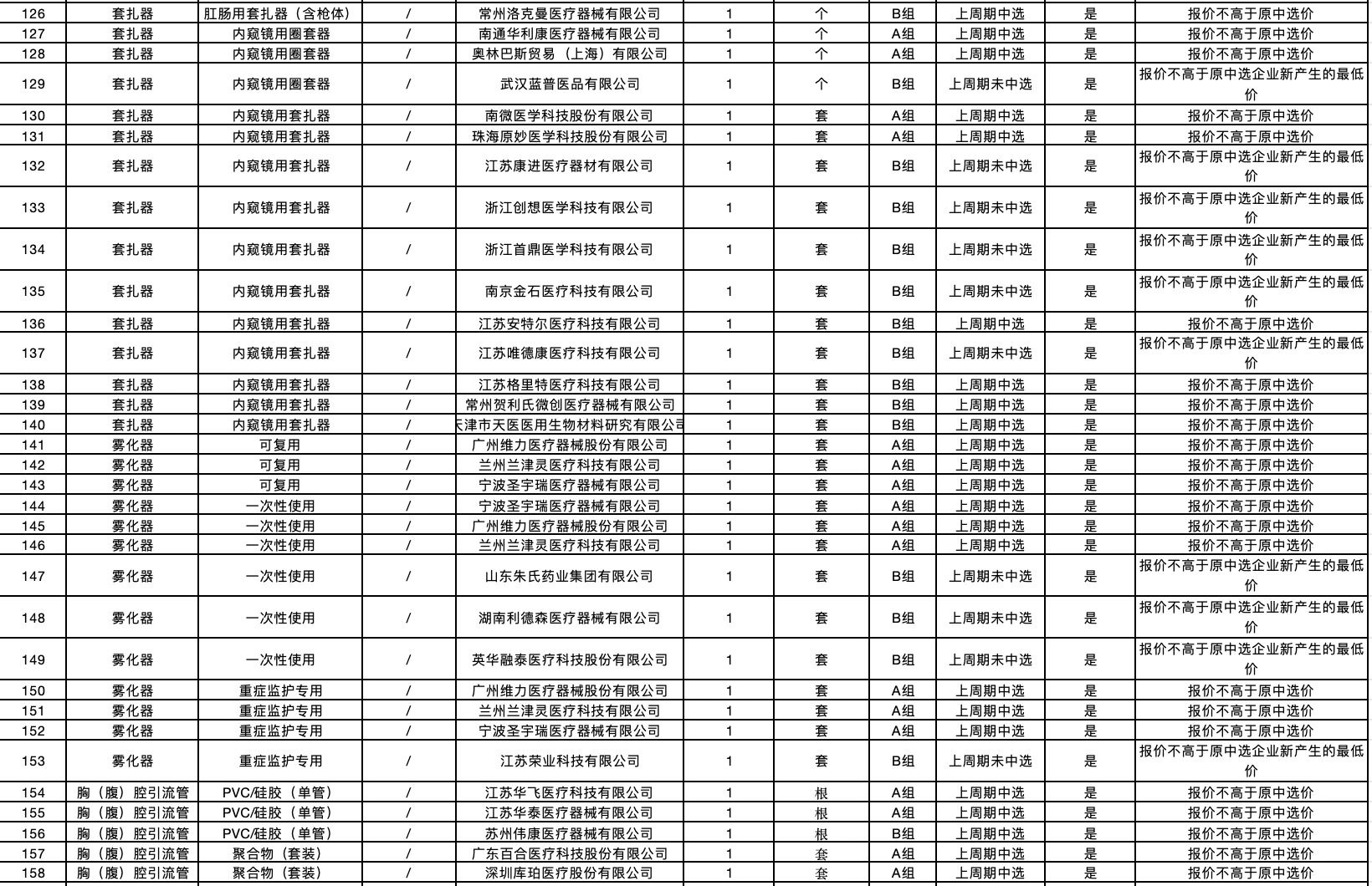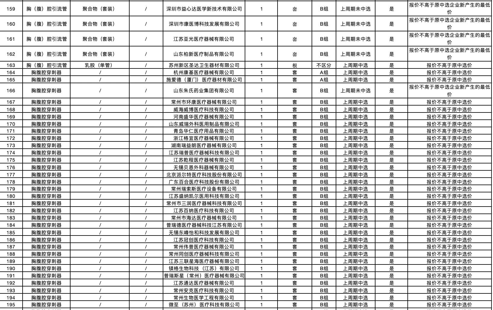 按照采購文件關于報價的規(guī)定,24個采購品種分47個產品分類進行報價,擬中選情況如下: