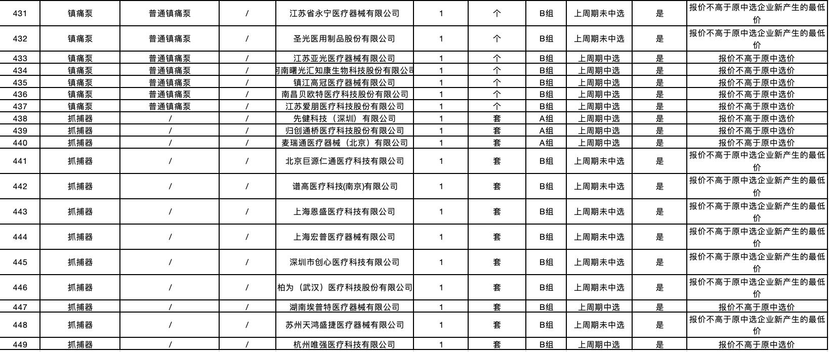 附:輸液港等24種接續(xù)采購醫(yī)用耗材擬中選結果: