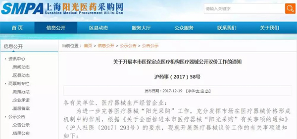 12月19日,上海陽光醫(yī)藥采購網(wǎng)發(fā)布《關(guān)于開展本市醫(yī)保定點(diǎn)醫(yī)療機(jī)構(gòu)醫(yī)療器械公開議價(jià)工作的通知》(以下簡稱《通知》),明確“公開議價(jià)”的流程,是醫(yī)療機(jī)構(gòu)發(fā)起議價(jià),終端企業(yè)確認(rèn)價(jià)格,雙方自主議定的結(jié)果即為采購價(jià)。該價(jià)格僅對本醫(yī)療機(jī)構(gòu)有效。