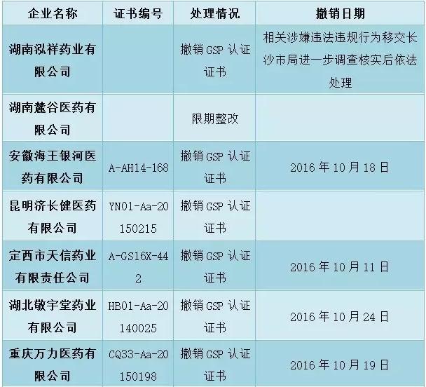 昨日(10月31日),國家食藥監總局一連貼出6條有關GSP的公告。其中1條為GSP飛檢公告,5條為GSP撤銷公告。一家藥商飛檢不合格被點名限期整改,6家藥商因嚴重違反GSP規定被撤銷GSP證。