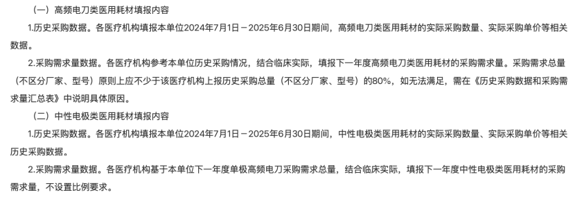 獲得中華人民共和國醫(yī)療器械注冊證的高頻電刀類醫(yī)用耗材,指利用高頻電流流經(jīng)人體產(chǎn)生的熱效應(yīng)實(shí)現(xiàn)切割、凝血的有源手術(shù)器械。國家醫(yī)保耗材分類代碼包括但不限于前7位為C140601、C140602、C010608的產(chǎn)品,其中不包括等離子刀、電磁刀、血管直徑≤7mm的高頻切割閉合刀頭、氬氣刀、射頻消融電極、手術(shù)機(jī)器人配套產(chǎn)品等。