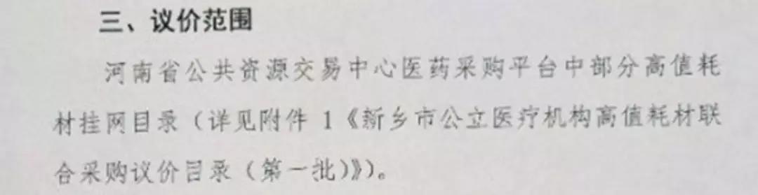 9月19日,新鄉(xiāng)市衛(wèi)計(jì)委發(fā)布的議價(jià)通知里的提到的“議價(jià)范圍”