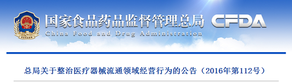 總局關于整治醫療器械流通領域經營行為的公告(2016年第112號)