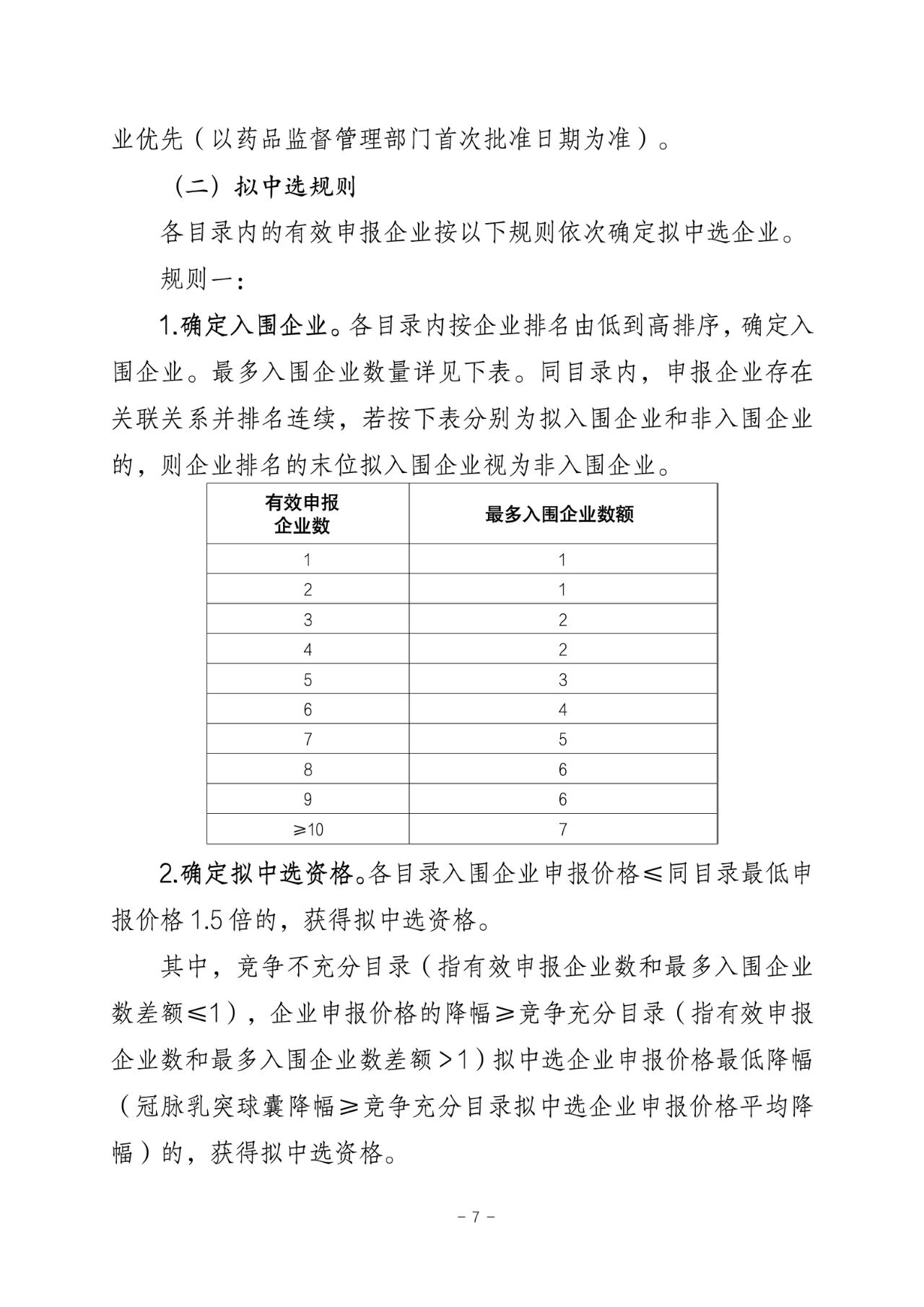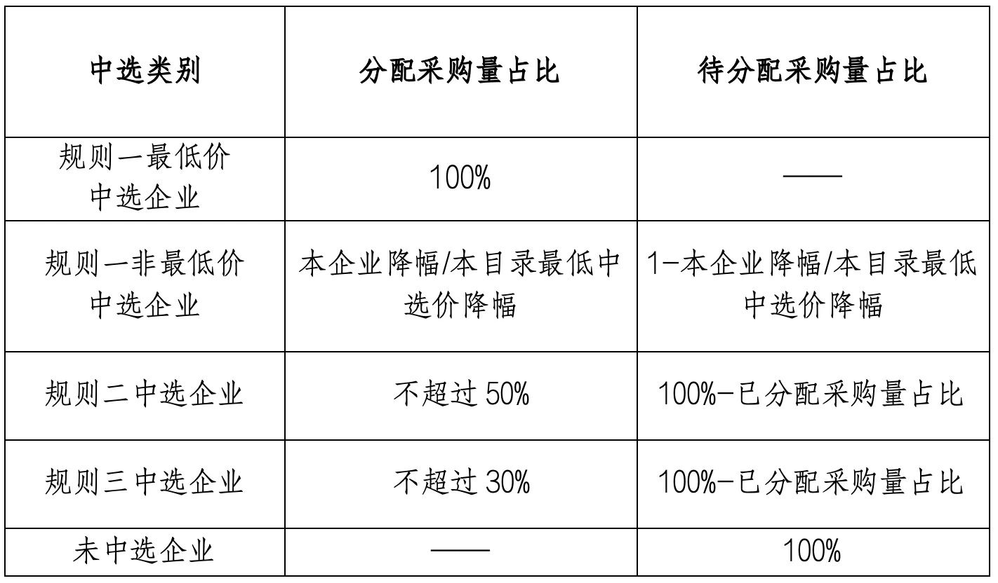 同目錄內,依據企業申報價格按照由低到高的順序確定排名,各目錄入圍企業申報價格≤同目錄最低申報價格1.5倍的,獲得擬中選資格。