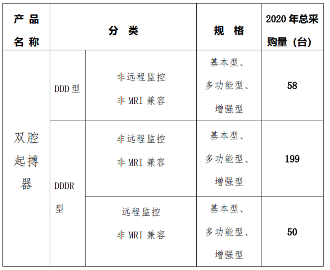 本次采購雙腔起搏器,首年約定采購量按全省各級公立醫(yī)療機(jī)構(gòu)上報2020年總采購量的70%確定,具體如下圖: